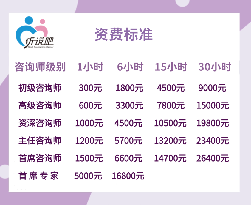 根据中心咨询师的不同级别,其咨询费用按以下标准收取: